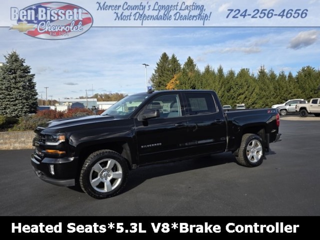 Priced below KBB Fair Purchase Price! Black 2018 Chevrolet Silverado 1500 LT LT2 4WD 6-Speed Automatic Electronic with Overdrive EcoTec3 5.3L V8 16/22 City/Highway MPG Sold and Serviced Here Since New!!, Non-Smoker, Oil Change, Vehicle Detailed, Dealer Inspected, Bluetooth, Heated Seats, 5.3L V8, Trailer Hitch, Remote Engine Starter, Dual Zone Climate Control, 6-Speed Automatic Electronic with Overdrive, 4WD, Black Cloth.